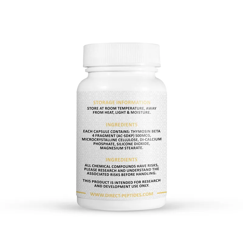 Buy Thymosin Beta-4 Fragment Capsules New Zealand, Ac-SDKP 500mcg are intended for research use only and should only be handled by trained professionals. These capsules contain Ac-SDKP, a tetrapeptide from thymosin beta-4 (TB-4), known for its role in supporting tissue regeneration, angiogenesis, and managing inflammatory responses.